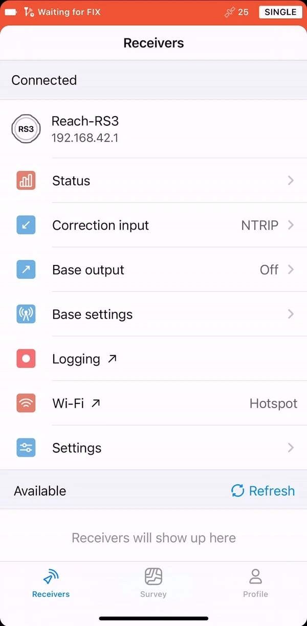 Connettiti al tuo GNSS Reach tramite Emlid Flow.